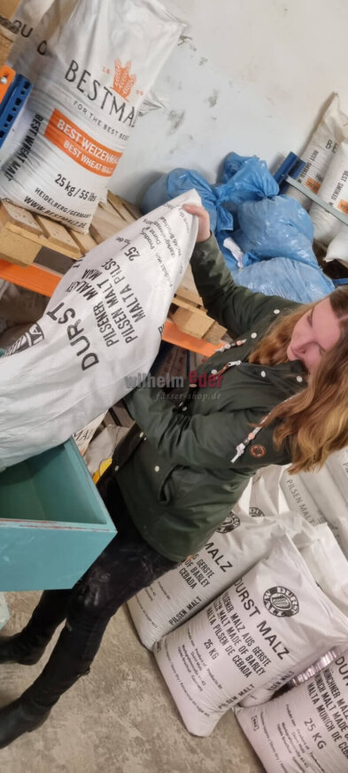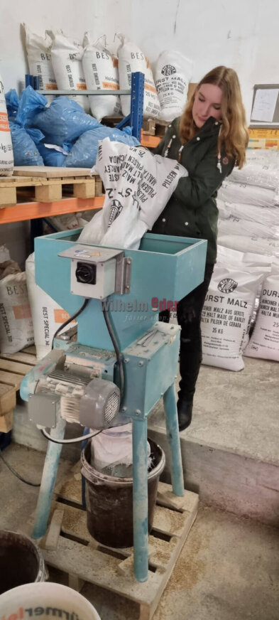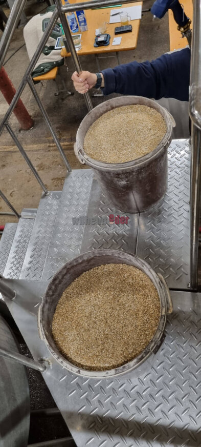 Am 28.04.2022 war es dann so weit: Brautag! Um 08:00 starten Jonas Eder und Ich in Richtung Heidelberg, um dort bei CraftCell mit Andi unser Bier zu brauen. Erstmal ging es ans Malzschroten. Mehrere Säcke voll mit regionalem Malz mussten geschrotet werden. Während wir das Malz durch die Schrotmühle ließen, wurde das Wasser im Sudhaus erhitzt. Bei einer Wassertemperatur von 67 Grad ging es schließlich ans einmaischen. Einmaischen heißt das geschrotete Malz wurde in das Sudwerk zu dem erhitzten Wasser geschüttet. Umrühren nicht vergessen sonst gibt es Klümpchen!