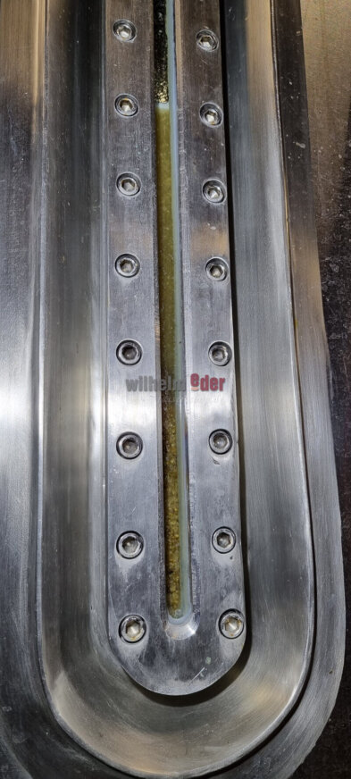 Nach dem Einmaischen wurden die Rasten gefahren, damit sich der Zucker aus dem Malz löst. Etwa eine stunde später war es dann an der Zeit zu läutern. Das Flüssige wurde vom Festen getrennt. Schließlich wurde der flüssige Teil zum Kochen gebracht und der Feste Teil, der sogenannte Treber wurde ausgetrebert und entsorgt. Treber kann auch gut als Futtermittel für Tiere und als Dünger verwendet werden. Nun kam der Hopfen ins Spiel. Wir haben extra die fruchtigen Hopfensorten Hallertauer, Mittelfrüh und Wai iti. ausgewählt damit unser Bier tropisch fruchtig schmeckt. Der Hopfen wurde an verschieden Zeitpunkten des Würzekochens dazu gegeben, um die Aromen optimal zu erhalten. Nach dem Würzekochen war unsere Arbeit schon so gut wie getan. Der Brauer macht die Würze, die Hefe macht das Bier. Die heiße Würze wurde nun abschließend heruntergekühlt und in den Gärtank gepumpt. Bei Erreichen von Zimmertemperatur konnte die Hefe ins Bier gegeben werden. Und nun heißt es warten, bis die Hefe ihre Arbeit getan hat. Wenn die Hauptgärung im Gärtank abgeschlossen ist heißt es: Ab ins Fass! Im 190l Martinique Rumfass bleibt das Bier nun bis Ende August. Zwischendurch wird natürlich immer wieder mal probiert, wie das Bierchen sich im Fass entwickelt. Ende August kommt das Bier dann nochmal zurück in den Gärtank und wird aufcarbonisiert, um ein erfrischendes sprudelndes Bier zu erhalten. Abschließend wird das Bier noch in Flaschen gefüllt und etikettiert.